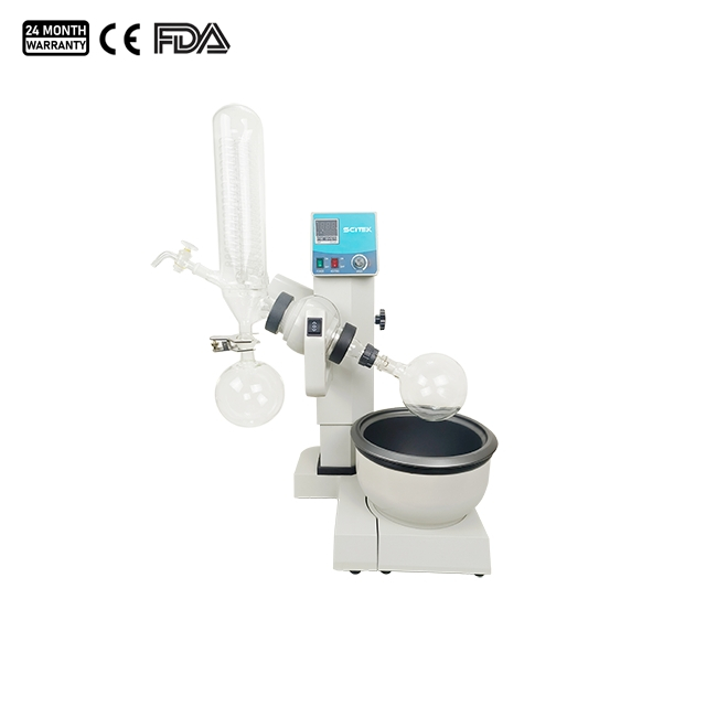 6. Condenser: Vertical integrated condenser made of high-temperature-resistant glass, featuring a double reflux design and spherical ground joints, paired with spherical ground joints receiving flask for quick and secure assembly and disassembly.